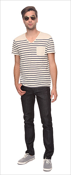 For the guys- you don't have to try too hard a v-neck, fitted jean and canvas sneaker with aviators epitomizes effortless style